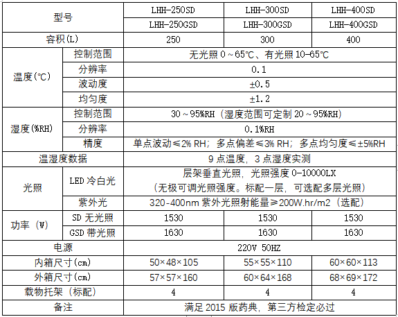 备注:SD无光照,GSD带光照并配光照检测仪(紫外光选配)