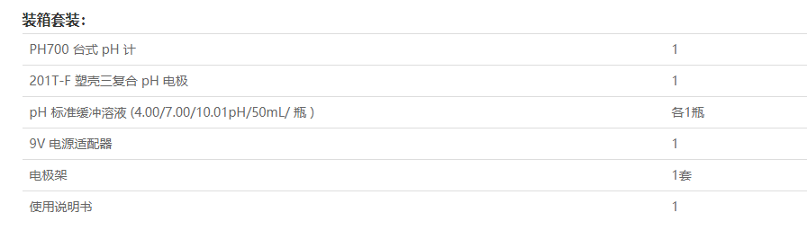 标配 201T-F 塑壳三复合pH 电极,适合常规水溶液的快速精确测量,pH 电极+ 参比电极+ 温度电极,可同时测量pH 值和温度值, 实现自动温度补偿;采用锂玻璃配方的 pH 敏感膜,阻抗低,电位稳定;砂芯 + 纤维丝二个液接界,有效改善液接界堵塞难题;无铅玻璃支杆,符合食品安全规范;电极球泡护罩:保护玻璃球泡无破损,拆卸后可清洗电极。