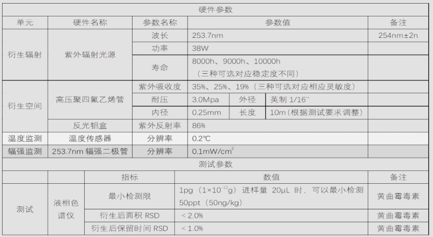 1.准确测定黄曲霉毒素含量,需将黄曲霉毒素 B1 和 G1 衍生,提高其荧光强度,这种用于液相-荧光法测定黄曲霉毒素时进行柱后光化学衍生系统。