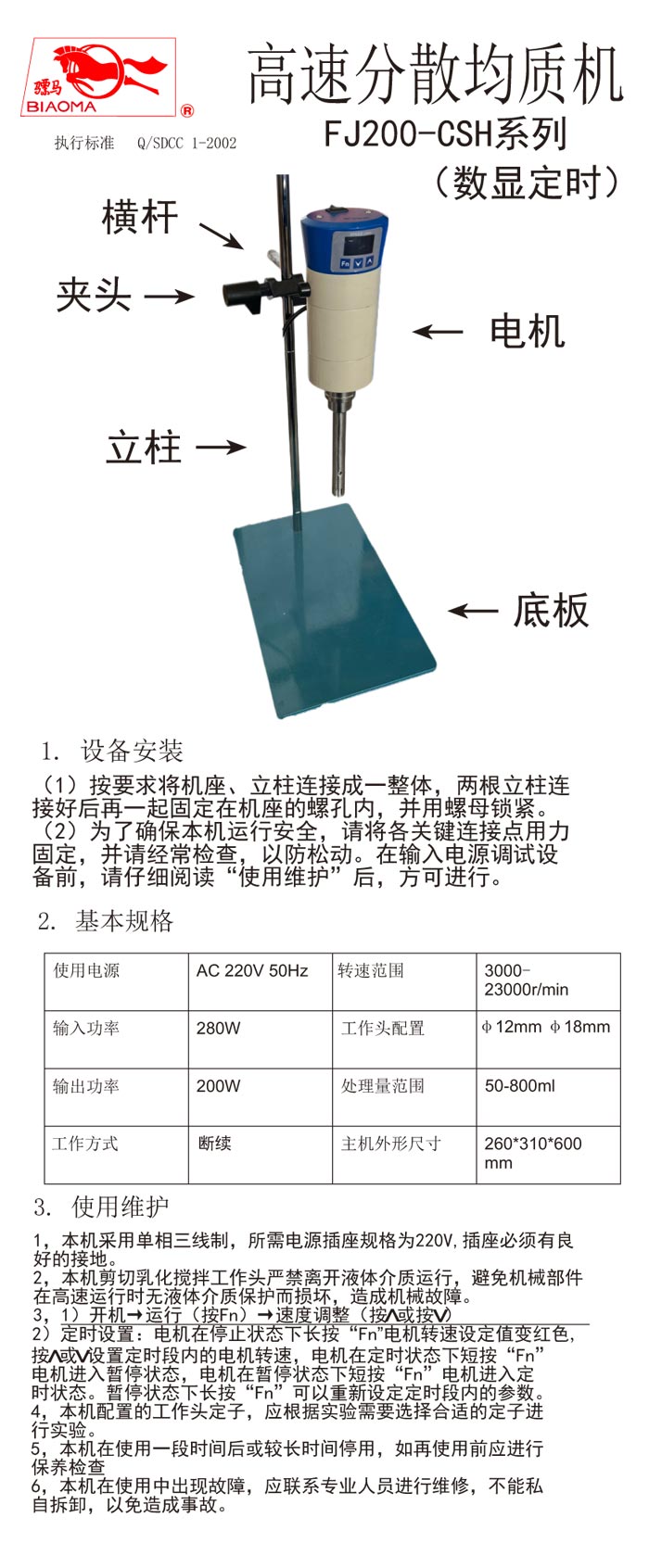 上海标本数显恒速高速分散均质机FJ200-CSH(数显定时)