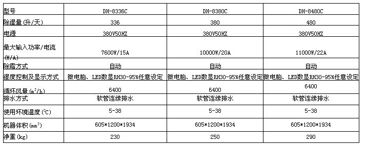 除湿大约面积:层高2.6m 250-350m2(DH-8336C)