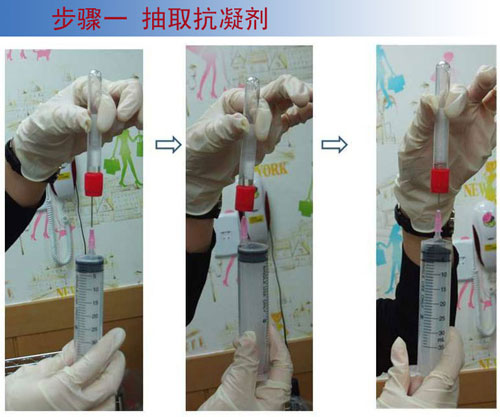 2、用装有3cc抗凝剂的注射器抽取血液17cc,共约20cc。