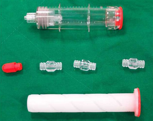 2.将离心后的PRP试管打开,前端用塑料螺母连接10cc注射器。