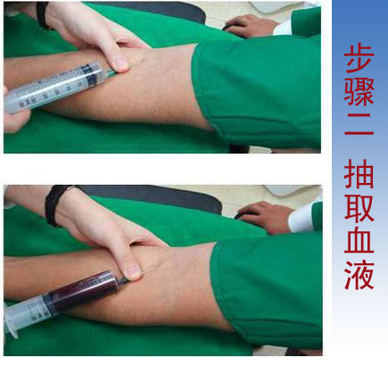 采血后摇晃注射器,使其混合均匀(如果采血过程中发生问题,血液没有采至20cc,那么首先将采集到的血液注入PRP试管中,加入生理盐水至20cc)