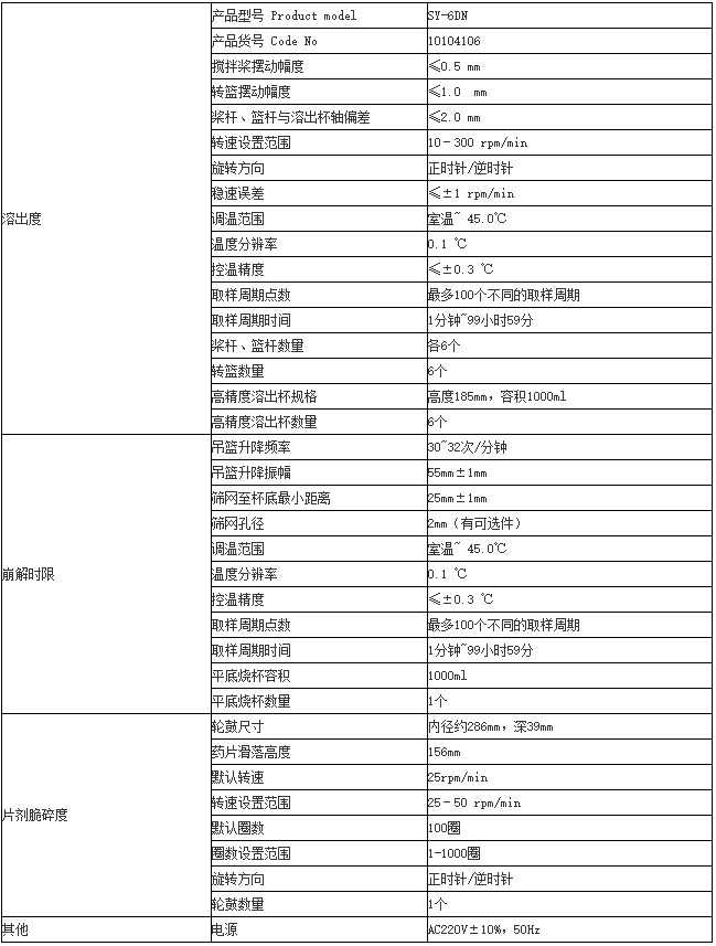 SY-6DN智能片剂四用测定仪集成了溶出度、崩解时限、片剂硬度、片剂脆碎度四大功能于一身, 并且采用国际先进的设计理念和制造技术,外形流畅美观,结构紧凑稳固,秉承高度可靠的性能、简便的操作性等优点。同时具备”转速准确”,”运行平稳”,”能耗低”等特性。 本产品广泛应用于制药厂、医药科研、教研和药检部门等。各项功能技术指 标完全符合《中国药典2015版》、仿制药一致性评价标准。