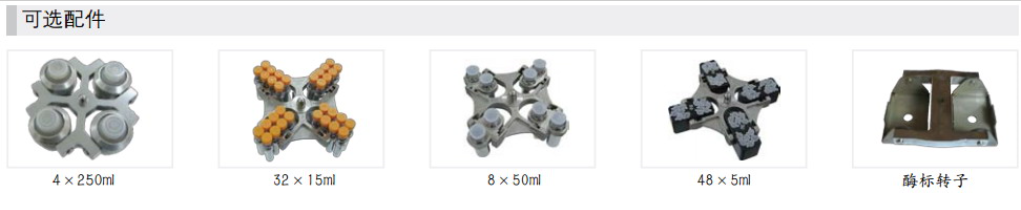9.航空锻造铝转子(仅限角转子)及多种聚酰胺纤维适配器可选,适用于0.2mL至250mL(TDZ6-WS最大仅支持100mL)离心管或试剂瓶;可离心各类MTP微孔板、PCR板、细胞培养板和深孔板。