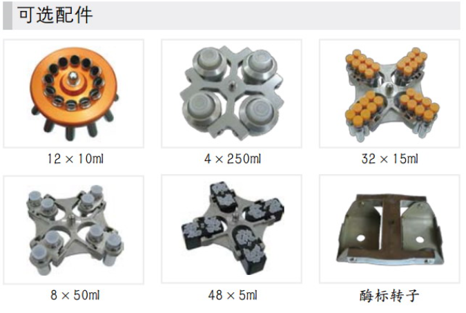9.航空锻造铝转子(仅限角转子)及多种聚酰胺纤维适配器可选,可离心各类MTP微孔板、PCR板、细胞培养板和深孔板。