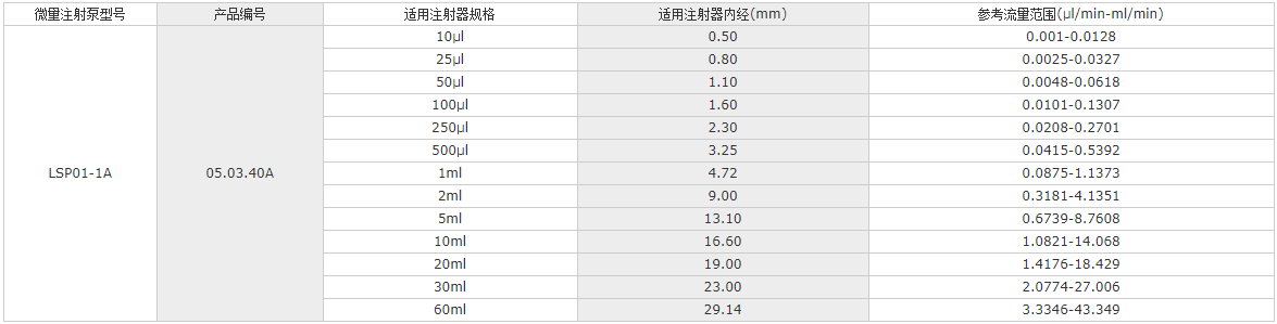 线速度范围:5μm/min-65mm/min(流量=线速度×注射器内截面积)