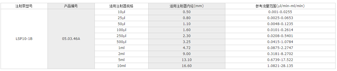 LSP10-1B注射器内径输入功能:可从列表中选择注射器或者直接输入注射器内径确定注射器