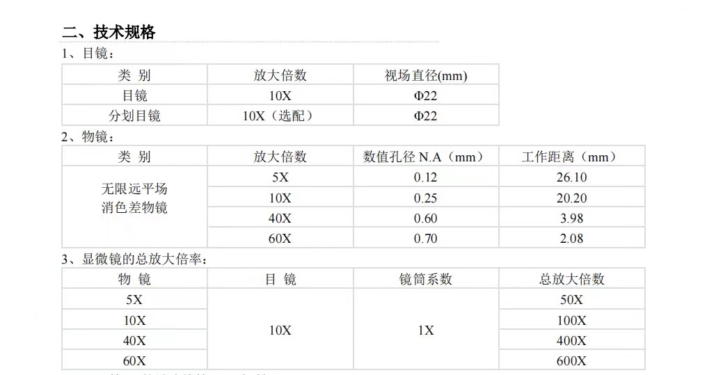 9、调焦装置:粗微动同轴调焦带限位、粗动调焦张力锁紧装置;微动格值:0.002mm