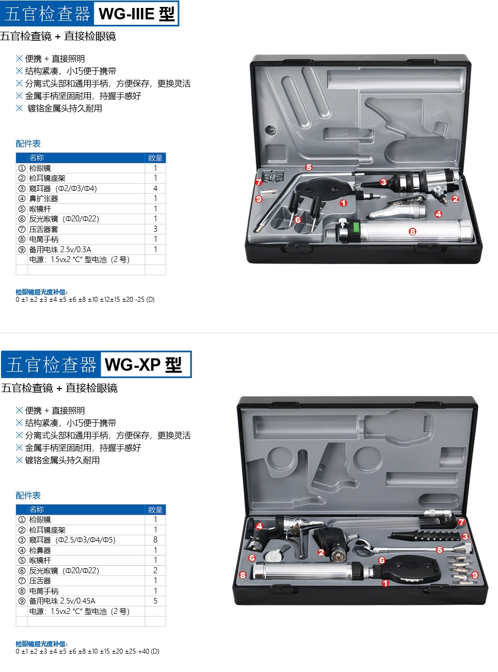 WG-XP屈光度补偿:±1、±2、±3、±4、±5、±6、±8、±10、±15、±20、±25、+40
