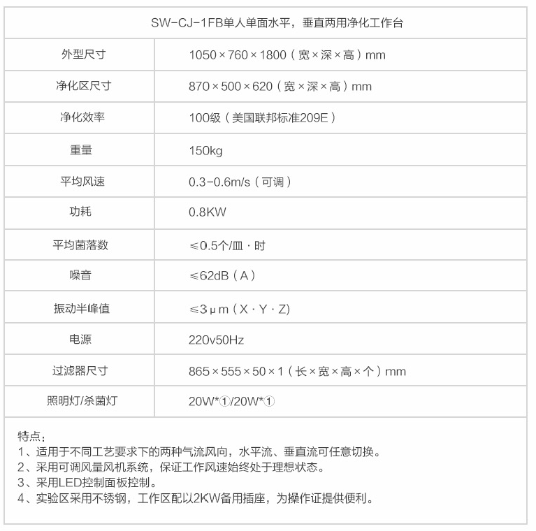 > 苏州智净单人单面水平、垂直两用净化工作台 SW-CJ-1FB