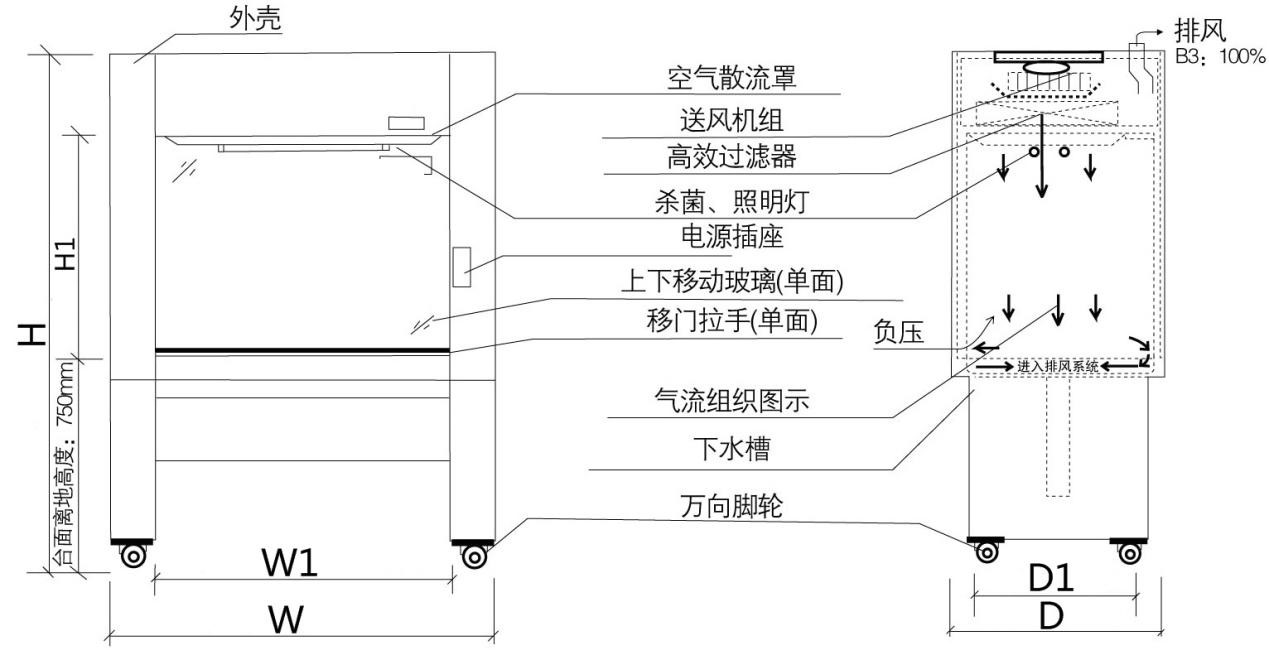 • 浙江孚夏全排风生物安全柜(钢木结构)BSC-1600IIB2