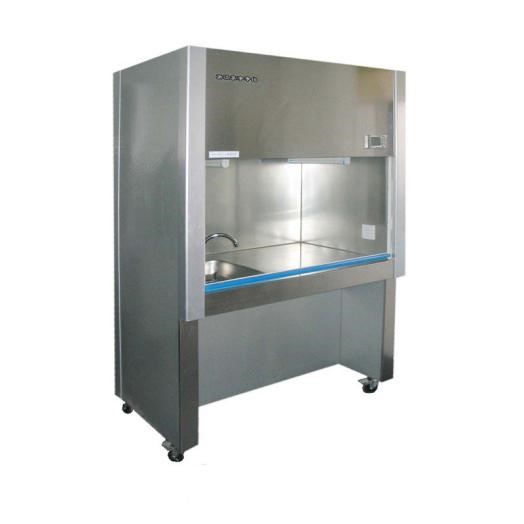 水、电、气、通风一体制,内装多功能电源插座,便于实验过程中试用其它电器设备。采用快开阀,便于实验过程中用水方便。前挡板为可上下移动玻璃门,顶部为低速抽风机,可将实验过程中的有害有味气体顺利排出。工作面底部装有不锈钢水槽,可将消毒液、实验残留物通过水洗从一排水槽排出,保持实验环境安全、可靠。
